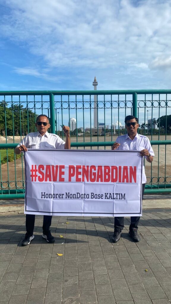 Sementara itu, di Jakarta, pada waktu yang hampir bersamaan, ratusan tenaga honorer non-database menggelar aksi damai di sekitar kawasan Monas. Mereka datang dari berbagai daerah untuk menuntut kepastian status, perlindungan kerja, serta kebijakan afirmatif bagi honorer yang selama ini tak terdata dalam pendataan nasional.