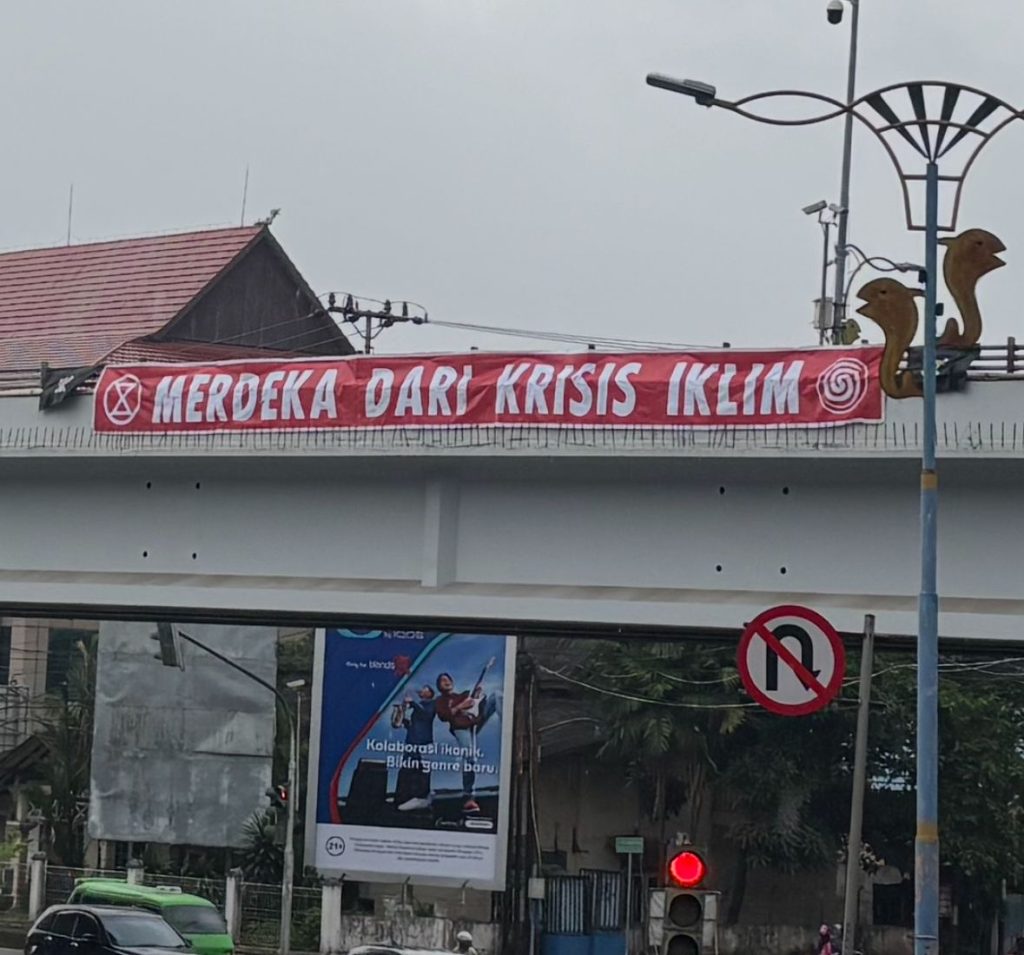Protes itu tersaji dalam bentuk aksi pembentangan spanduk di atas Flyover Air Hitam, Samarinda. Kain rentang sekira 50 meter berisi tulisan “Merdeka Dari Krisis Iklim” terpampang pada Minggu 17 Agustus 2025 pagi. Gerakan XR Bunga Terung sengaja memasang untuk mengingatkan bahaya krisis iklim masih menghantui Kaltim.